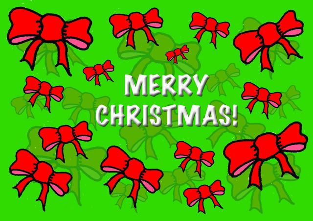 I used a simple design for this assignment and I had some inspiration from a bathroom towel that had some ribbons on it. To me the ribbon symbolizes the gift of sharing that we celebrate with our loved ones for special occasions especially Christmas. Thus, I decided to use this ribbon and multiply it to make an arrangement of ribbons and use it as the fundamental design for the greeting card. I replicated the ribbon by drawing it by hand and scanning it in and touching it up with the help of Adobe Illustrator and Photoshop. I varied the size and opacity of each ribbon to create a kind of faded background that contrasted with the solid ribbons up front. I chose a striking red for the ribbons and a cheerful green for the background to signify the theme of Christmas.